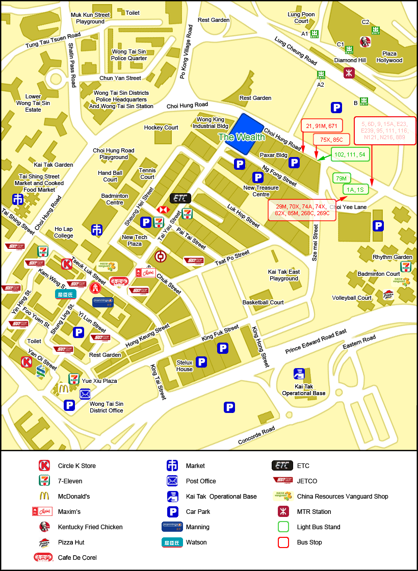MIDAS PLAZA is situated in the prime location in San Po Kong, which is near Diamond Hill MTR Station and a big shopping mall. It is right in the centre point of Choi Hung Road and Tai Yau Street. In fact, it is a hub of transportation, which links up all parts of Hong Kong. Different routes of mini-buses, buses and MTR can lead you to Kowloon, the New Territories and the Hong Kong International Airport within minutes.