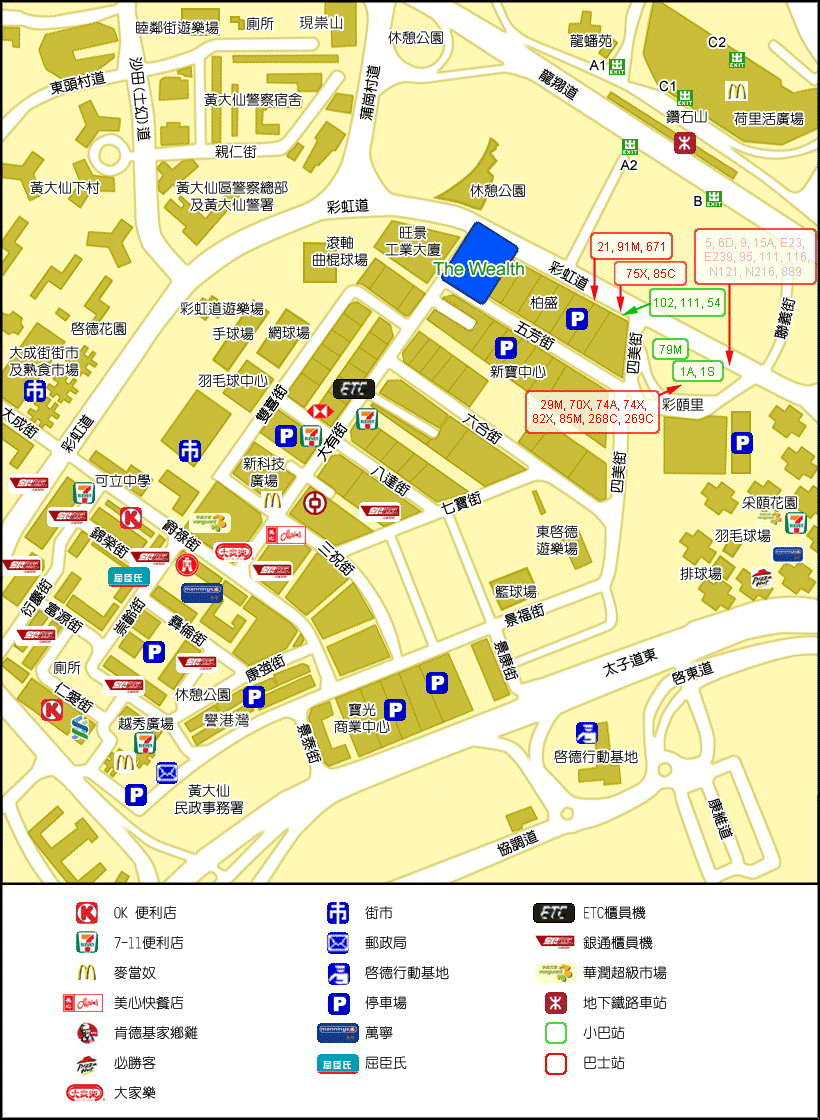 更位處彩虹道及大有街交界,為交通樞紐中心交匯地帶,四通八達,